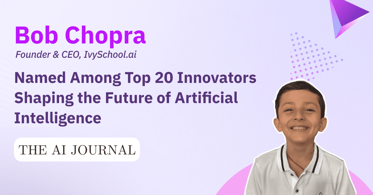 Bob Chopra is the founder of IvySchool.ai, an EdTech movement teaching kids aged 5–18 to build with AI, code, robotics, and creative technology through hands-on, mentor-guided cohorts. At 9 years old, Bob is the world’s youngest ed-tech founder.