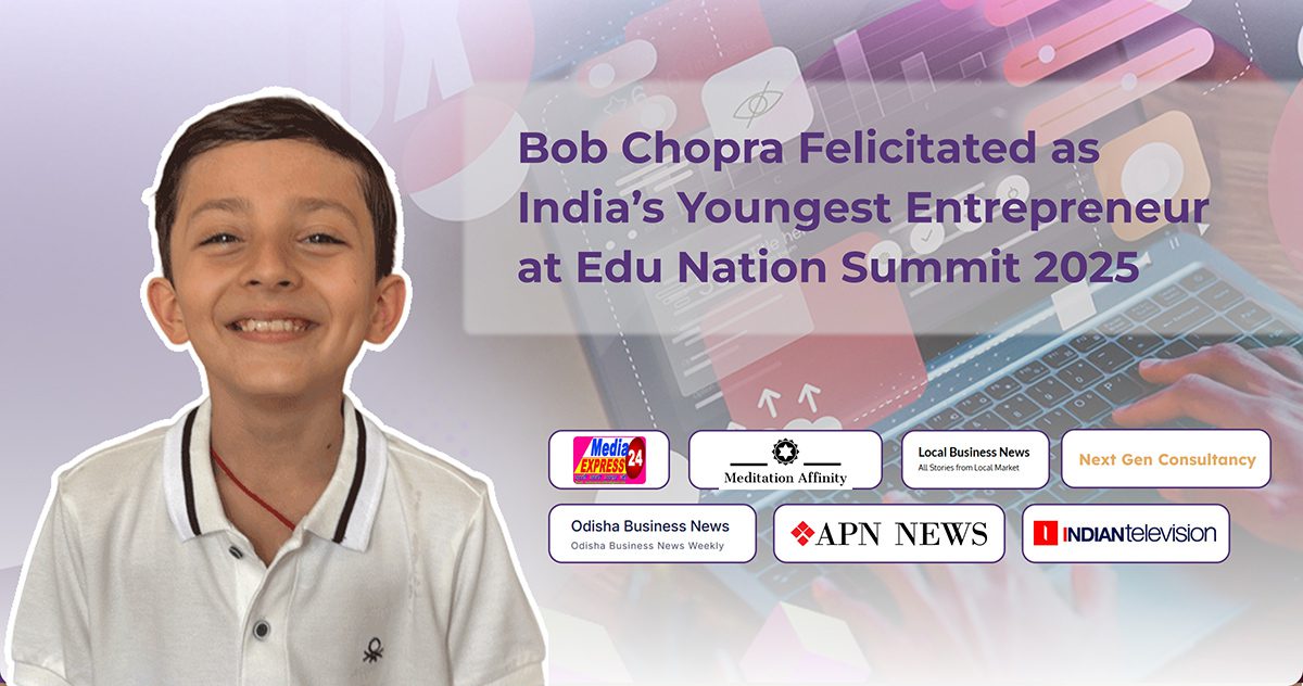 Bob Chopra, was felicitated as the youngest entrepreneur in the country at the prestigious Edu Nation Summit 2025 held at IIT Guwahati.